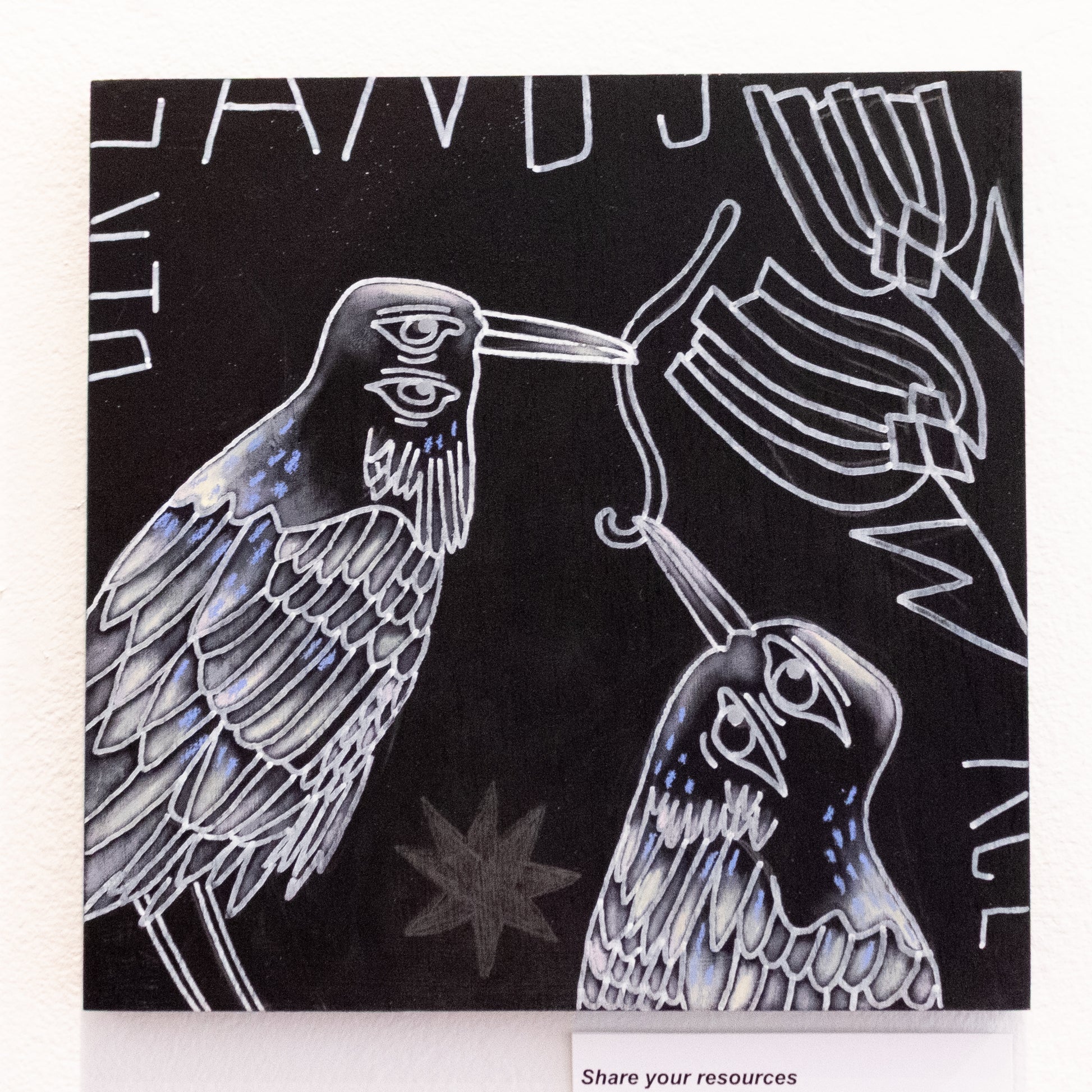 Acrylic gesso, pencil, & wax crayon on wood panel